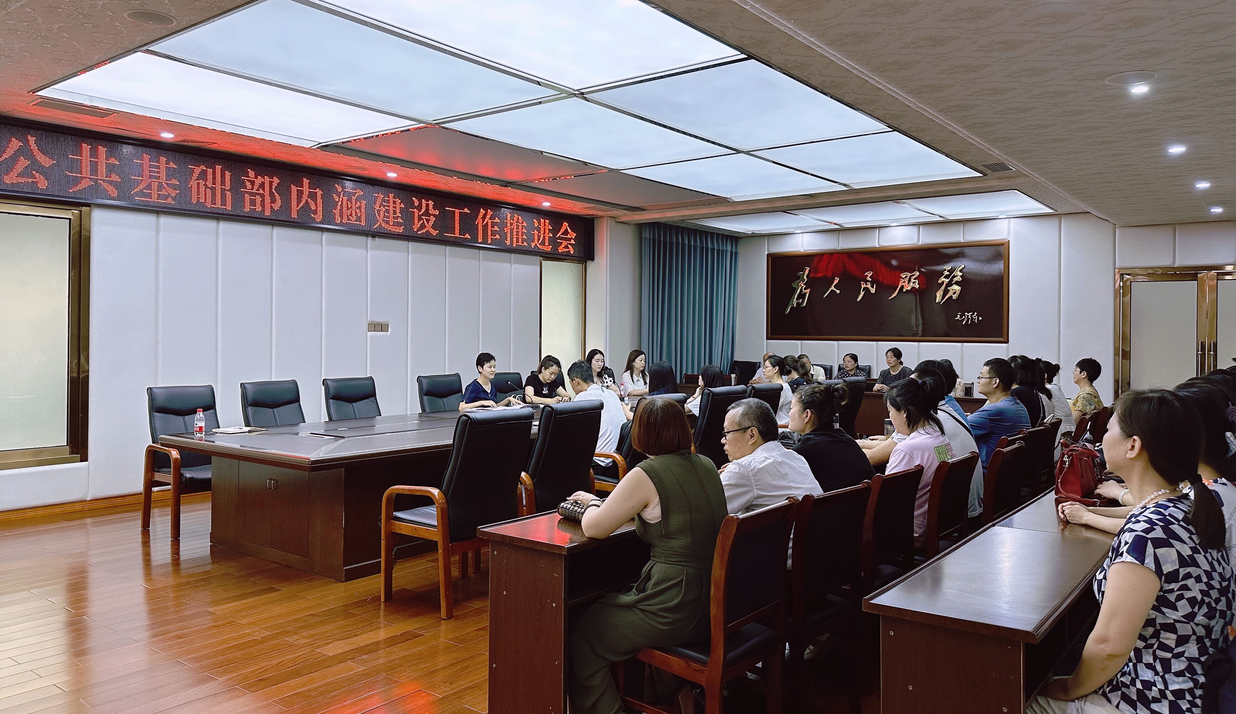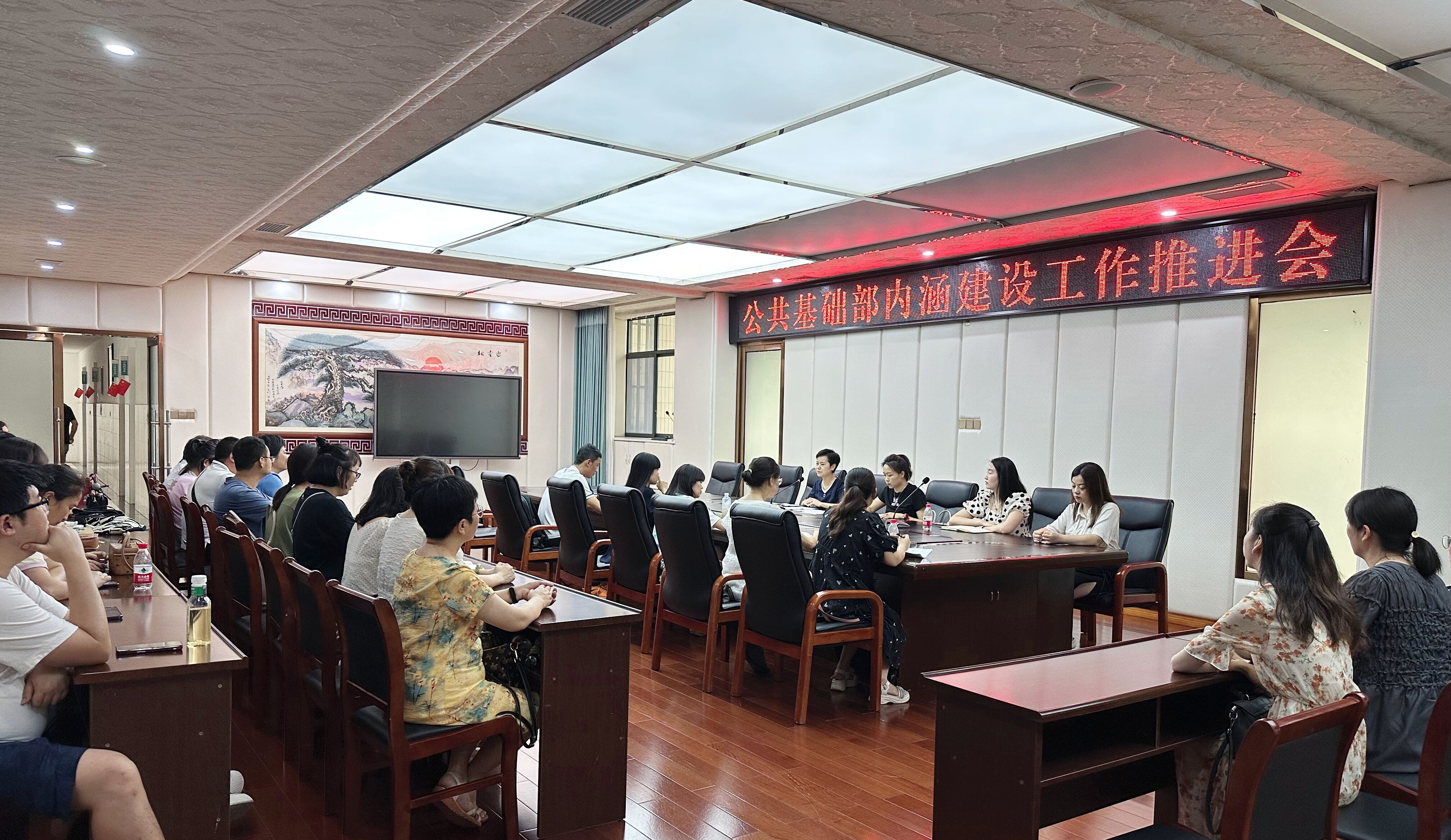 为贯彻落实学校高质量发展工作推进会会议精神和工作要求,进一步推进工公共基础部教育教学工作。2023年7月7日上午11点,在南区综合楼三楼第四会议室,公共基础部召开2023年公共基础部内涵建设工作推进会,公共基础部专兼职教师共计50余人参加此次会议,会议由薛鳗部长主持。