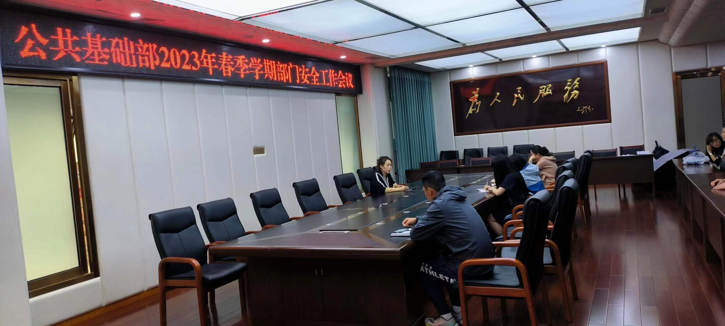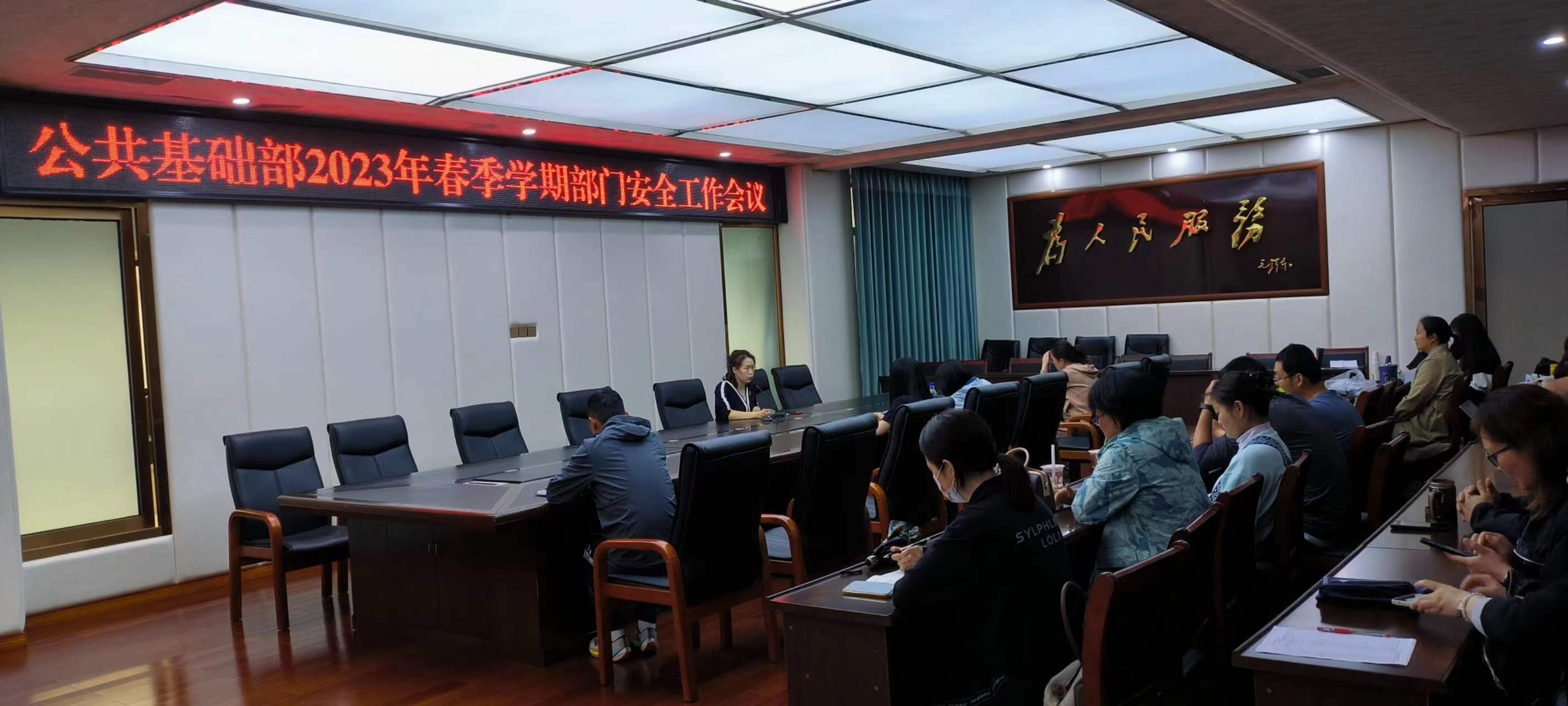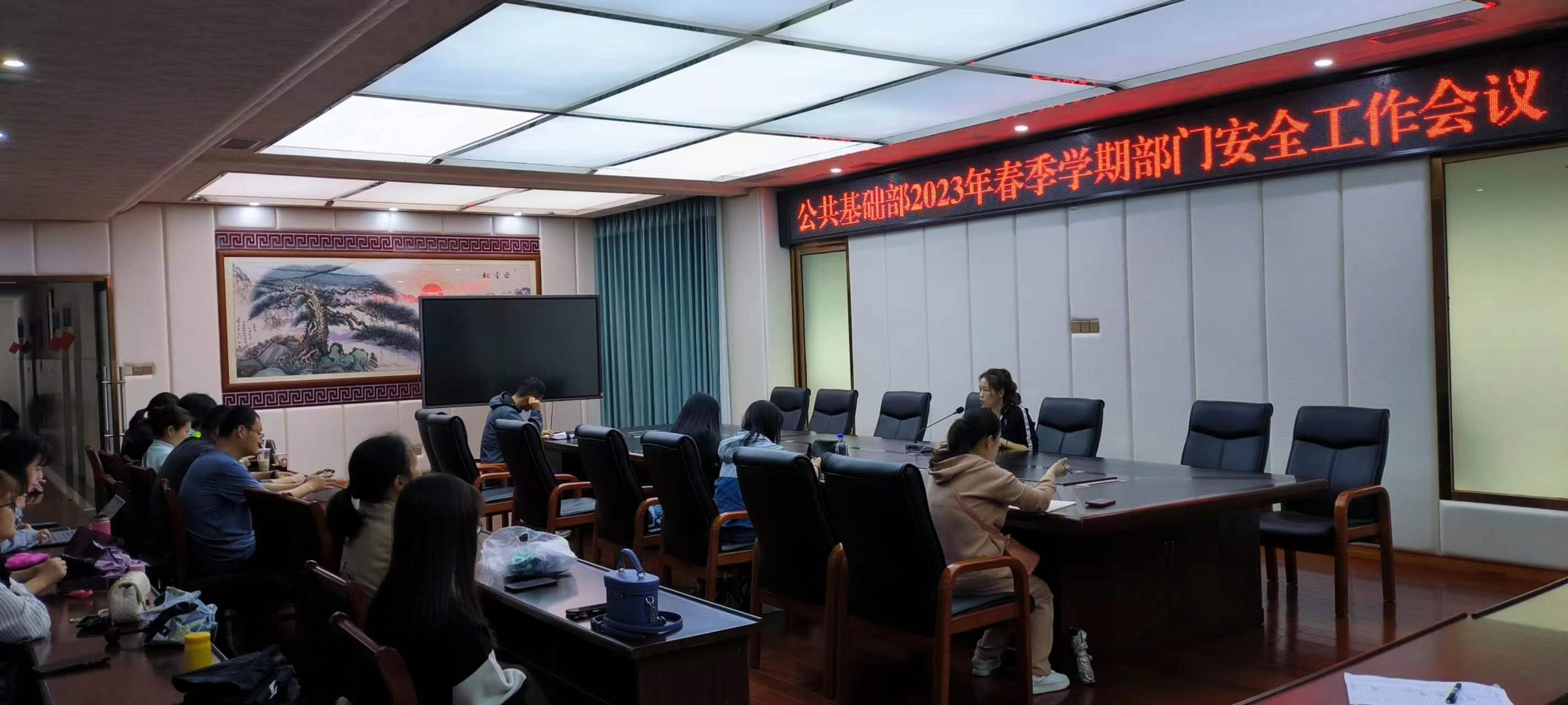 2023 年 4 月 21 日中午12点40,公共基础部召开了本学期第三次部门工作会议暨安全工作会议,专兼职教师 50余人参加。会议由张虹副部长主持。