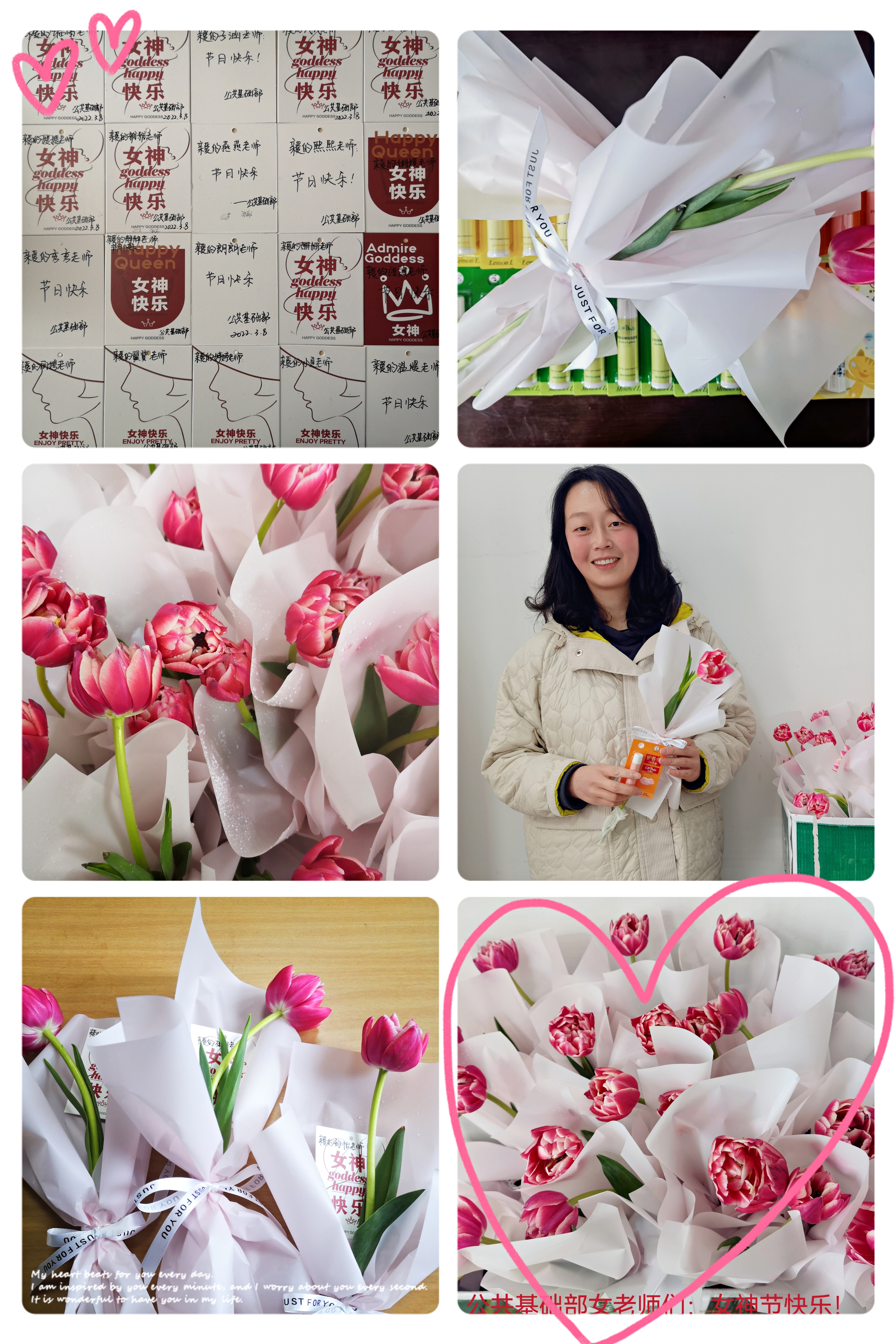 明媚的三月,带着绿意,携着芬芳来了。2022年3月8日,在这个特殊的节日里,为庆祝三八妇女节,营造温馨和谐的部门氛围,增加团队凝聚力,公共基础部为老师们准备了精美的鲜花和礼物。