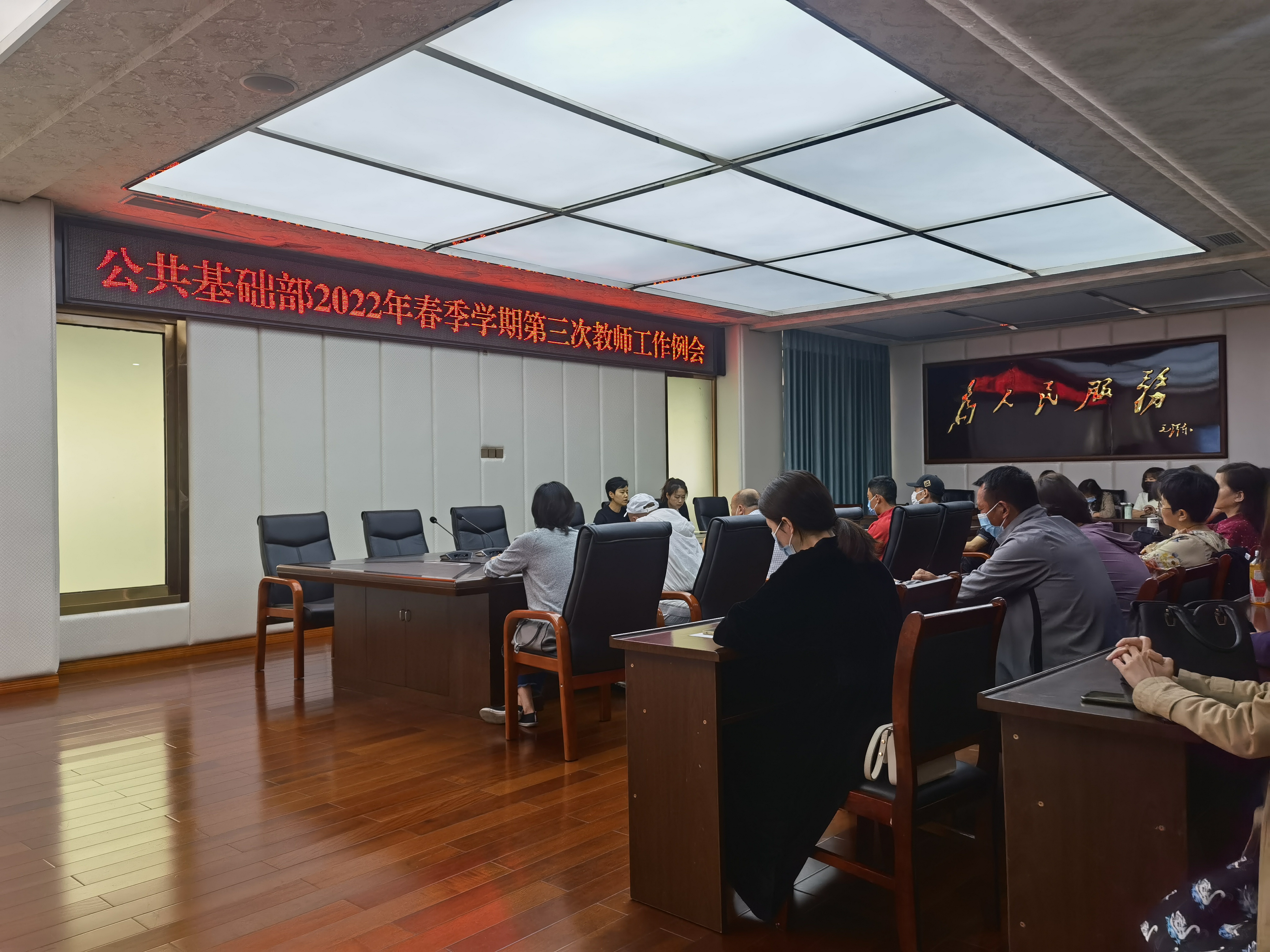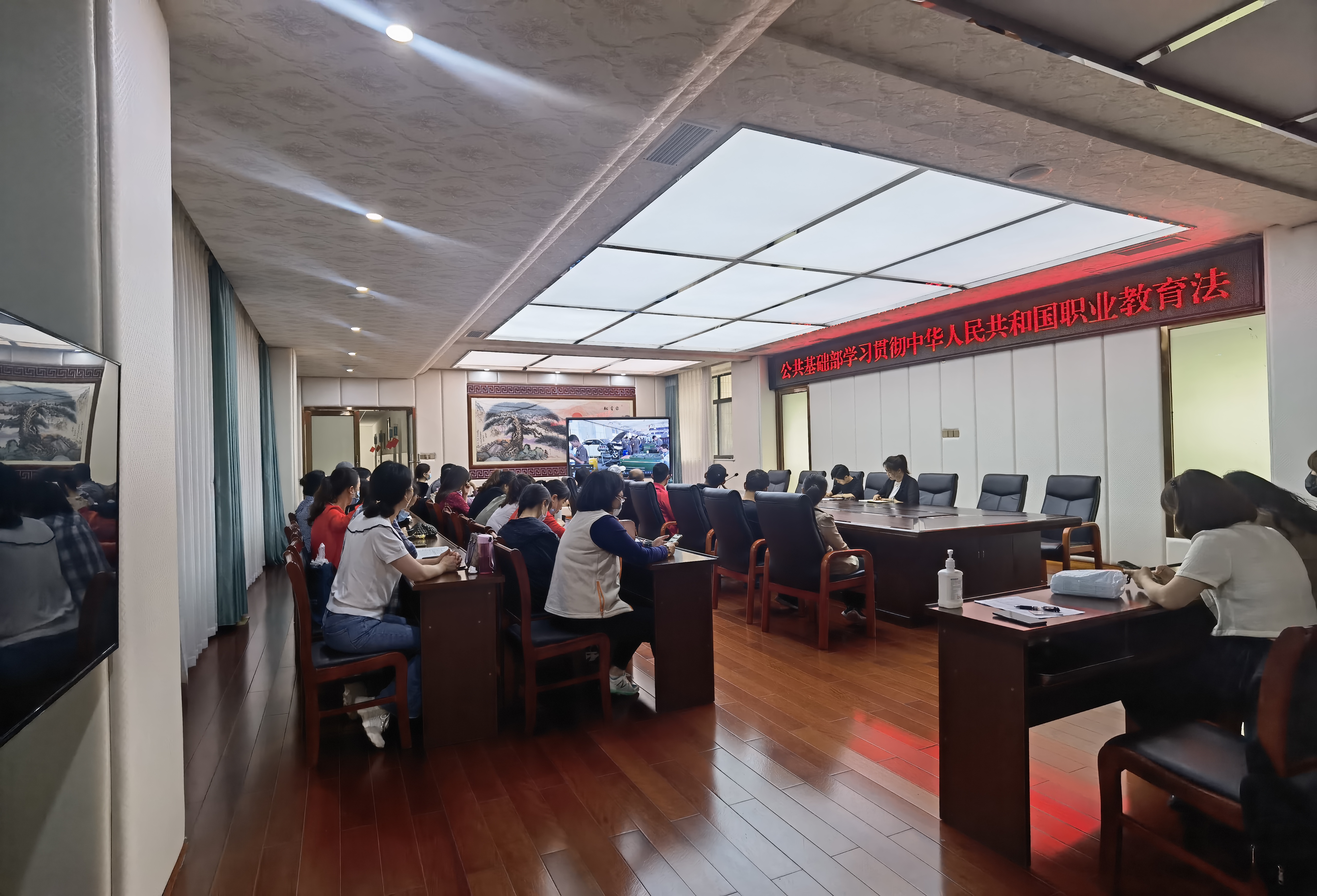 2022年5月25日中午,公共基础部在南校区综合楼第四会议室组织组织召开《中华人民共和国职业教育法》专题学习会议暨2022年春季学期第三次教师工作会议,薛鳗部长组织会议,部门全体教师参加本次会议。