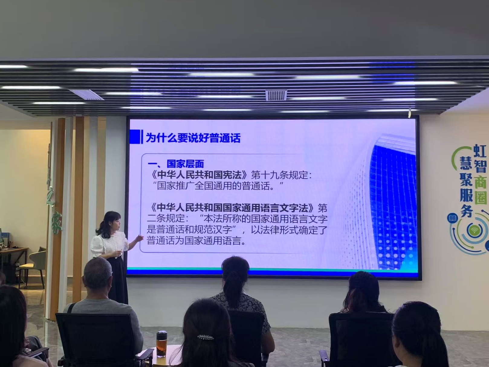 为让活动精准贴合社区需求,公共基础部前期与虹苑路社区深入沟通,结合社区中老年居民占比高、家长群体关注子女教育等特点,确定以“政策解读+趣味教学+互动实践” 为核心形式,组建由人文教研室教师组成的专业宣讲团队,筹备普通话发音手册、规范汉字字帖、健康场景词汇卡片等实用物料,为活动高效开展筑牢基础。