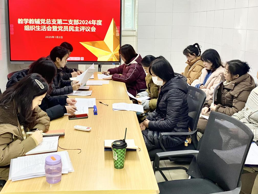 教学教辅党总支第二支部2024年度组织生活会暨党员民主评议会于2025年1月2日在公共基础部会议室顺利召开,支部全体党员参加会议。