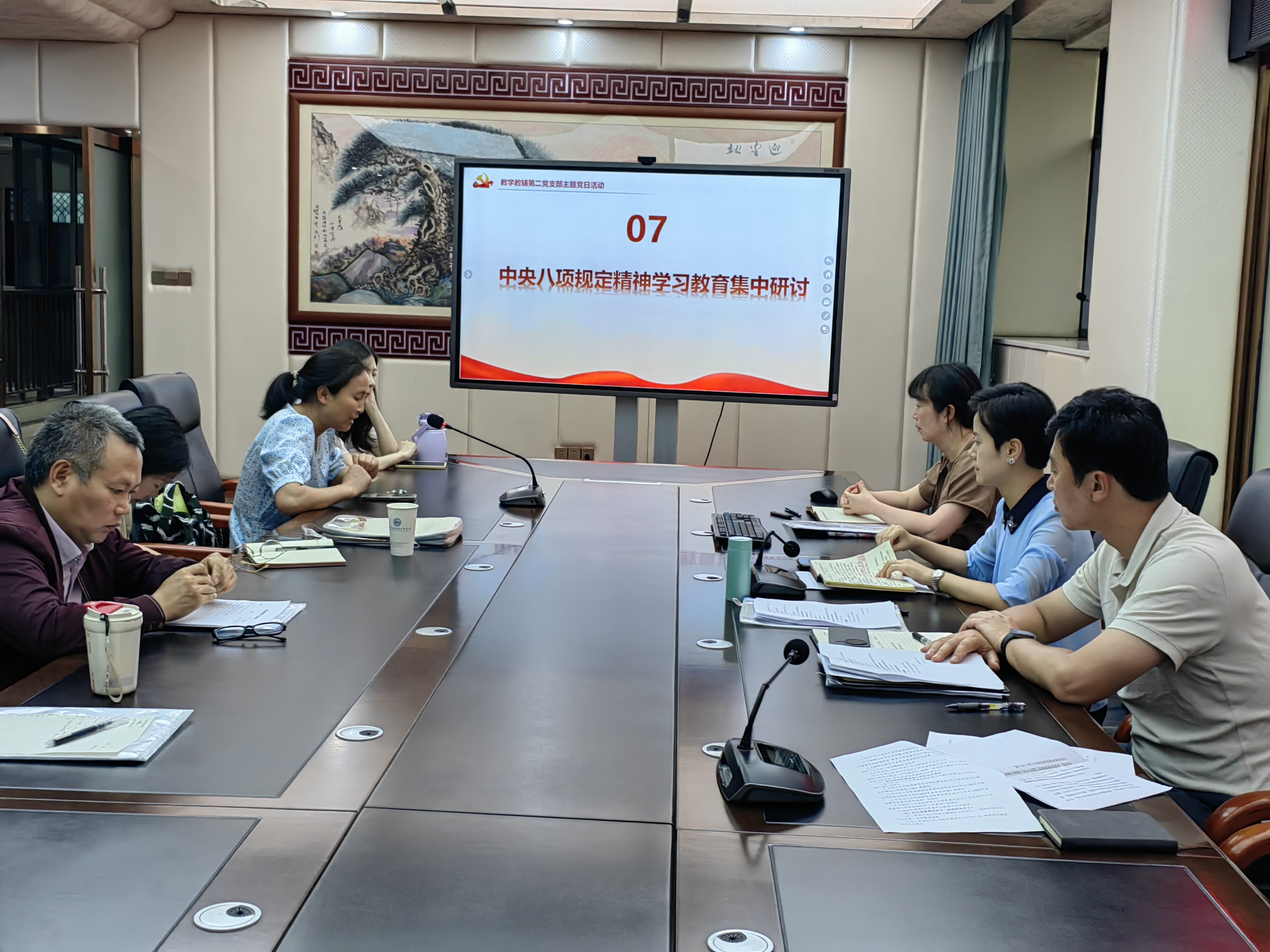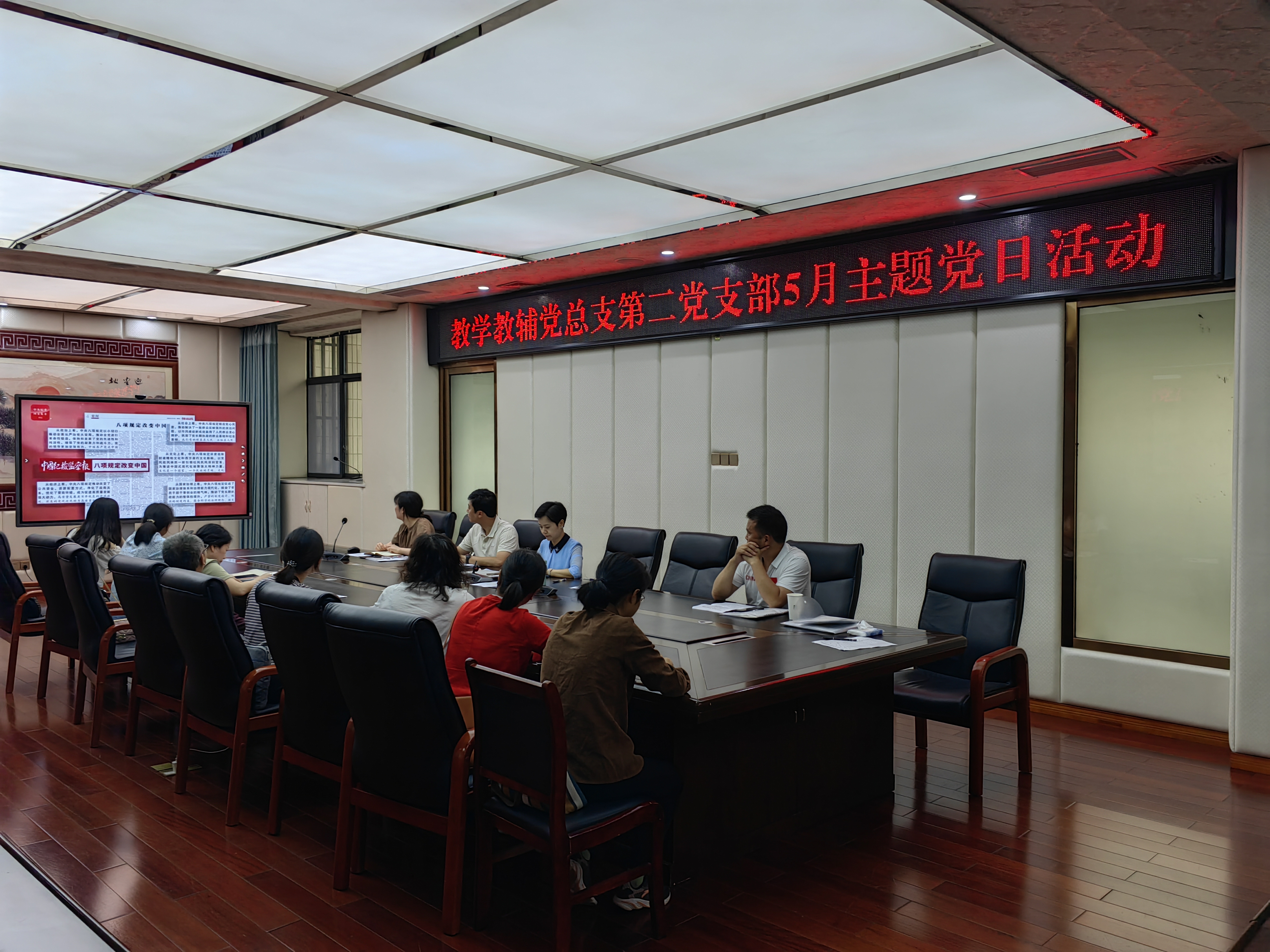 2025年5月29日下午,教学教辅党总支第二党支部在学校南园综合楼三楼会议室组织开展了本月主题党日活动,活动围绕深入贯彻中央八项规定精神学习教育展开,通过领学、研讨等形式,深化理论武装,强化作风建设。会议由支部书记薛鳗主持,支部全体党员参会。